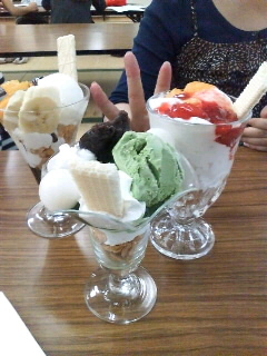 ぱんださんとT中さんとK田さんと、パフェ食べてました♪