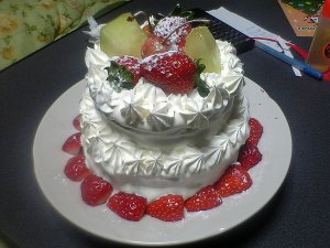 そして焼いたスポンジと、準備しといた材料を持って、今日偶然(本当に偶然!)ばあちゃん家でご飯を食べることになってたので、ばあちゃん家に持っていく。