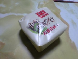 上半分が抹茶ケーキで、下半分が小豆がちょっと入ったケーキ。