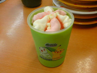 期間限定で、サンデーを頼んだら、ポケモンのコップがもらえるということで、