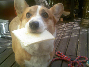 ウチのごはんきれちゃったらしいから、パンもらったの~。