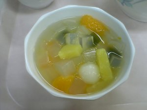 オレンジゼリーとフルーツ寒天(白玉入りv)。