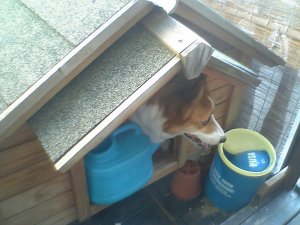 小屋の入り口に何かがつっかえてるの・・・。