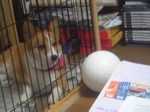 ふと見てみたら、ウチの犬が檻の隙間から鼻を出して