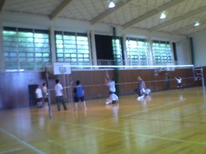 ↑体育館での先生方のバレーの練習風景。。