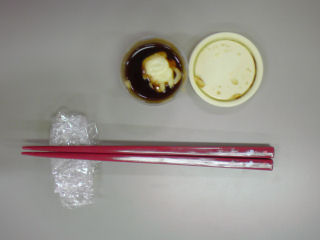 お弁当と一緒に持ってきてたソースとマヨネーズの入れ物をお弁当風にセッティングww