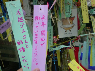 その横に短冊が置いてあり、お願い事を書いて、かけれるんですよー。